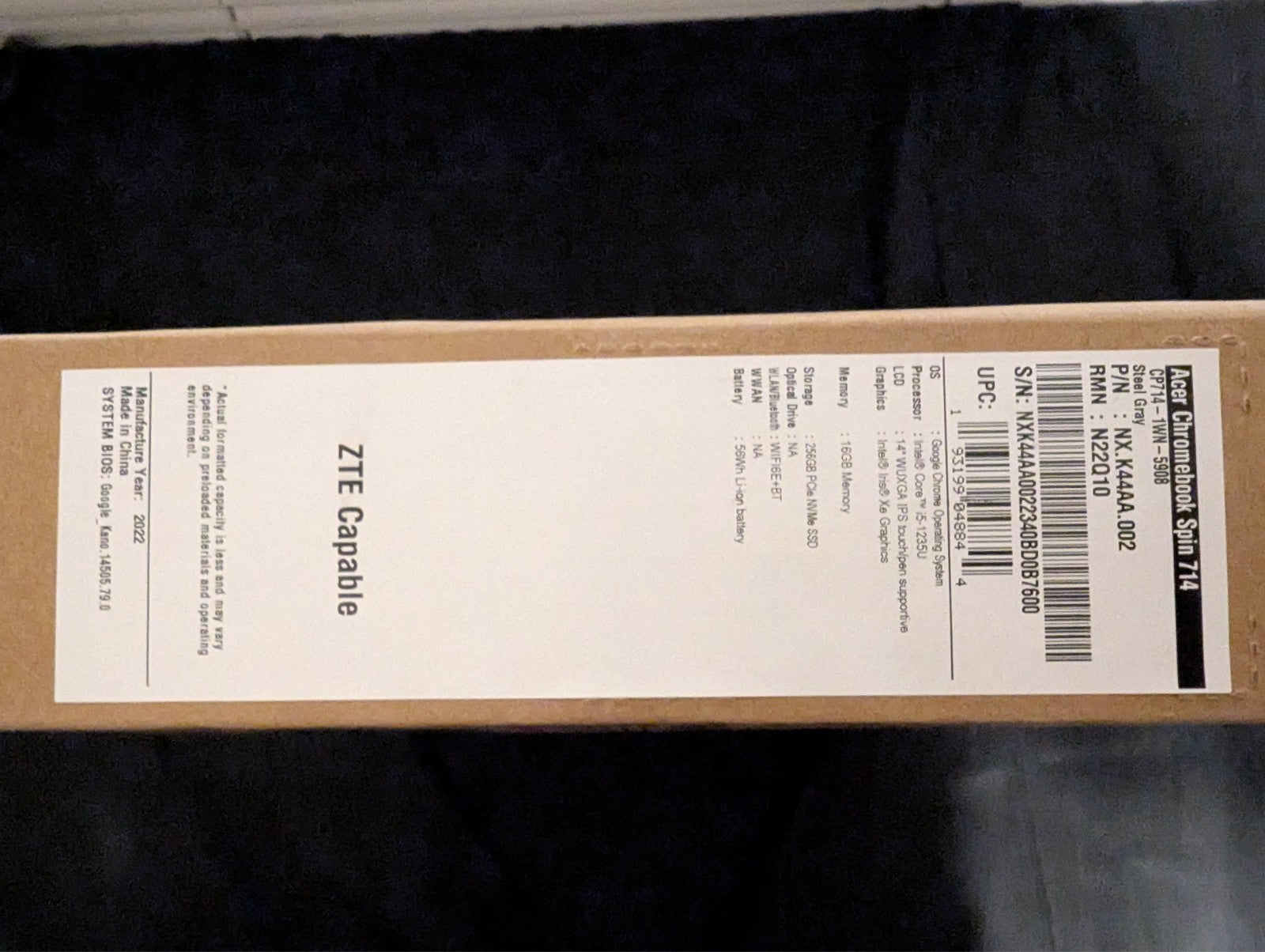 Device Specifications — Acer Chromebook Enterprise Spin 714