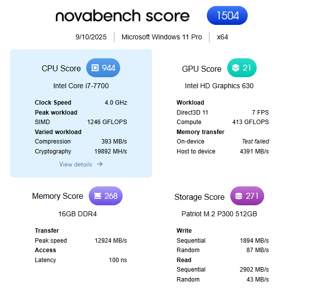- Processor: Intel Core i7-7700 @ 3.60GHz