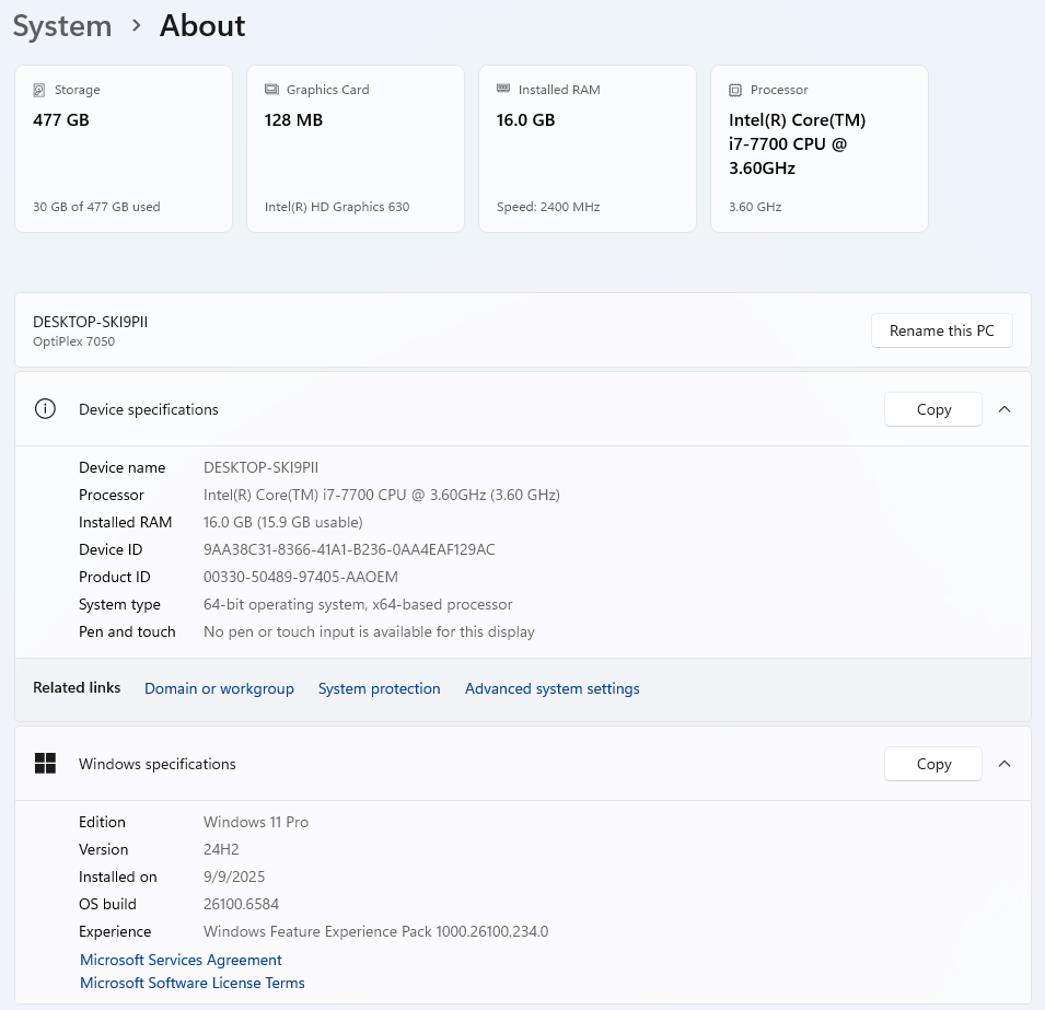 - Processor: Intel Core i7-7700 @ 3.60GHz