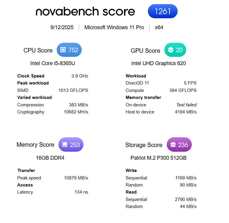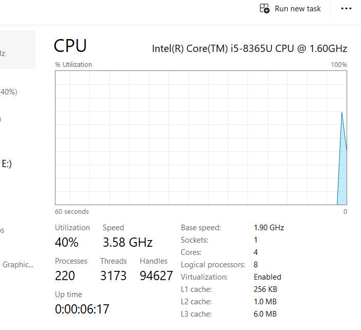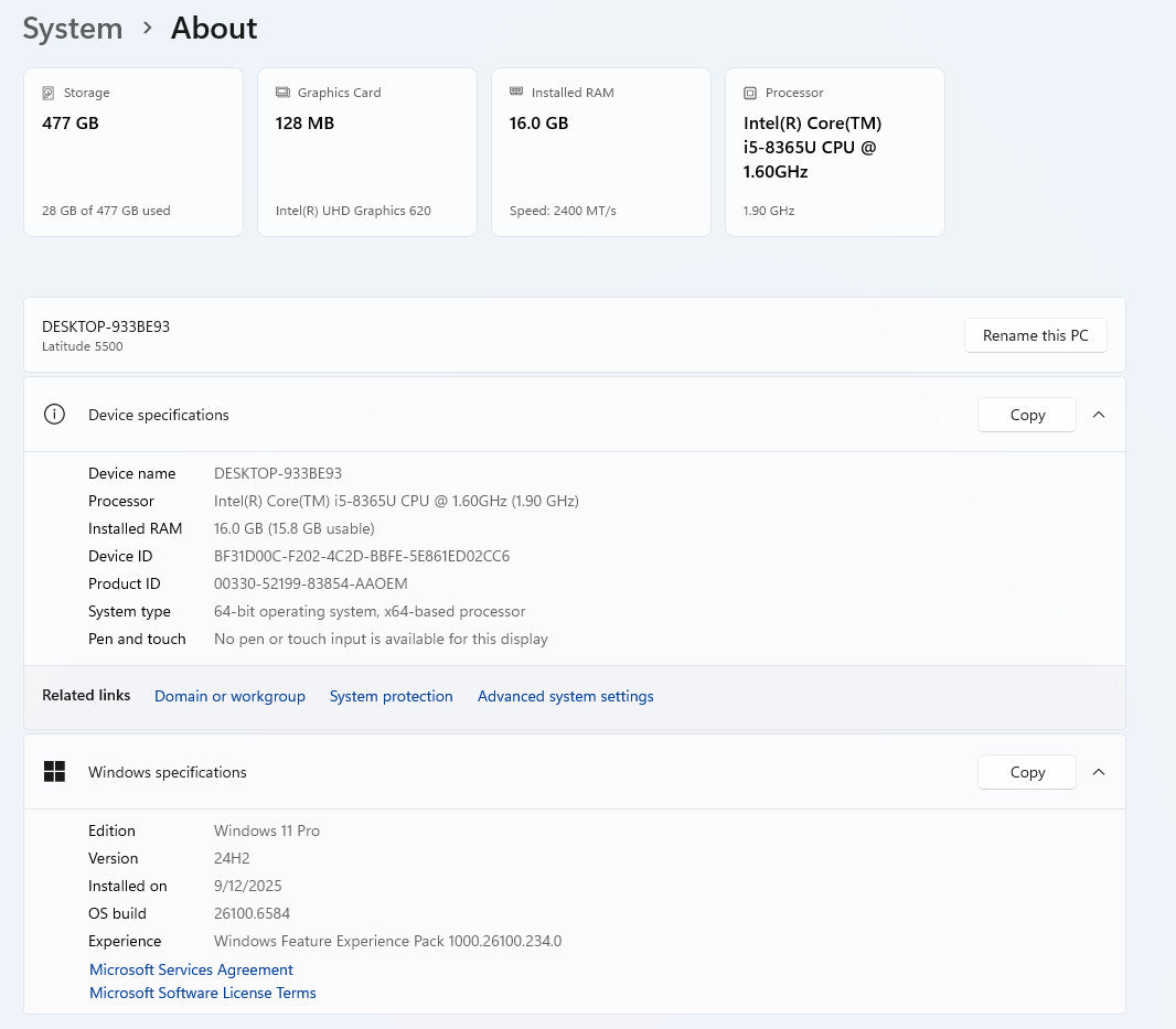 - Processor: Intel Core i5-8365U @ 1.60 GHz
