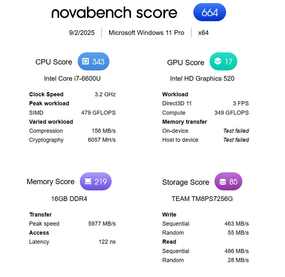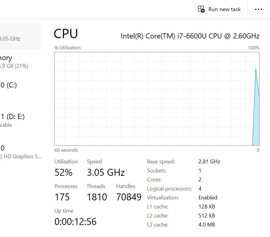 - Processor: Intel Core i7-6600U @ 2.80 GHz