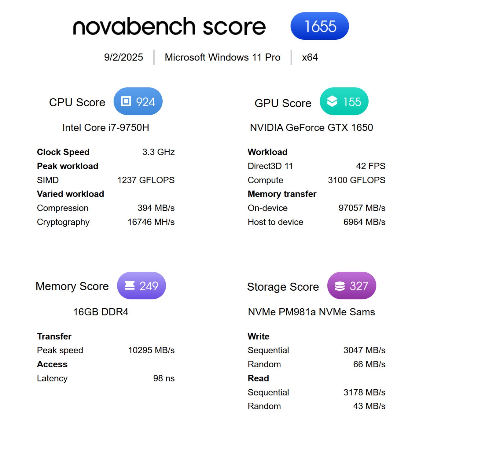 - Dedicated GPU: NVIDIA GeForce GTX 1650
