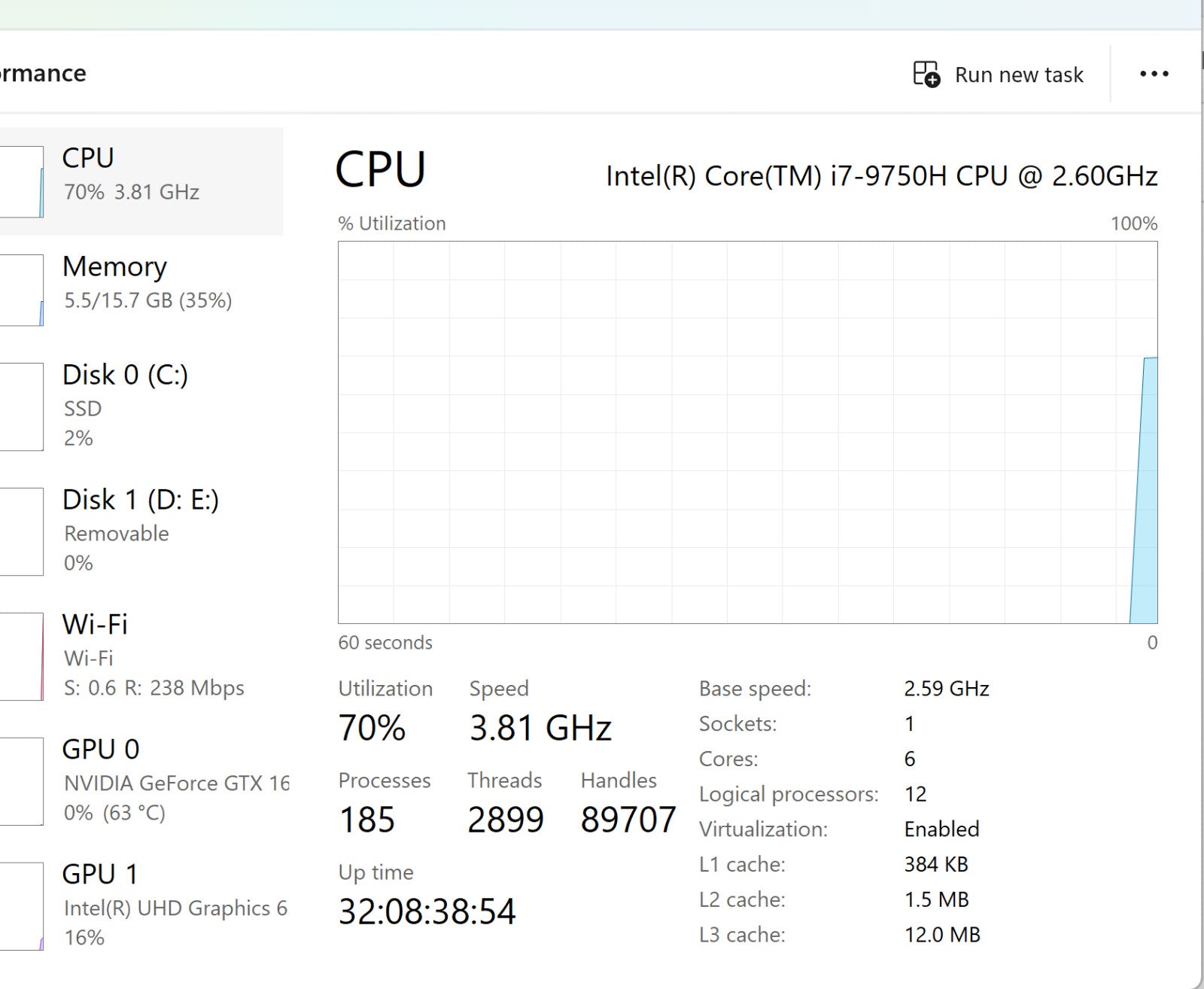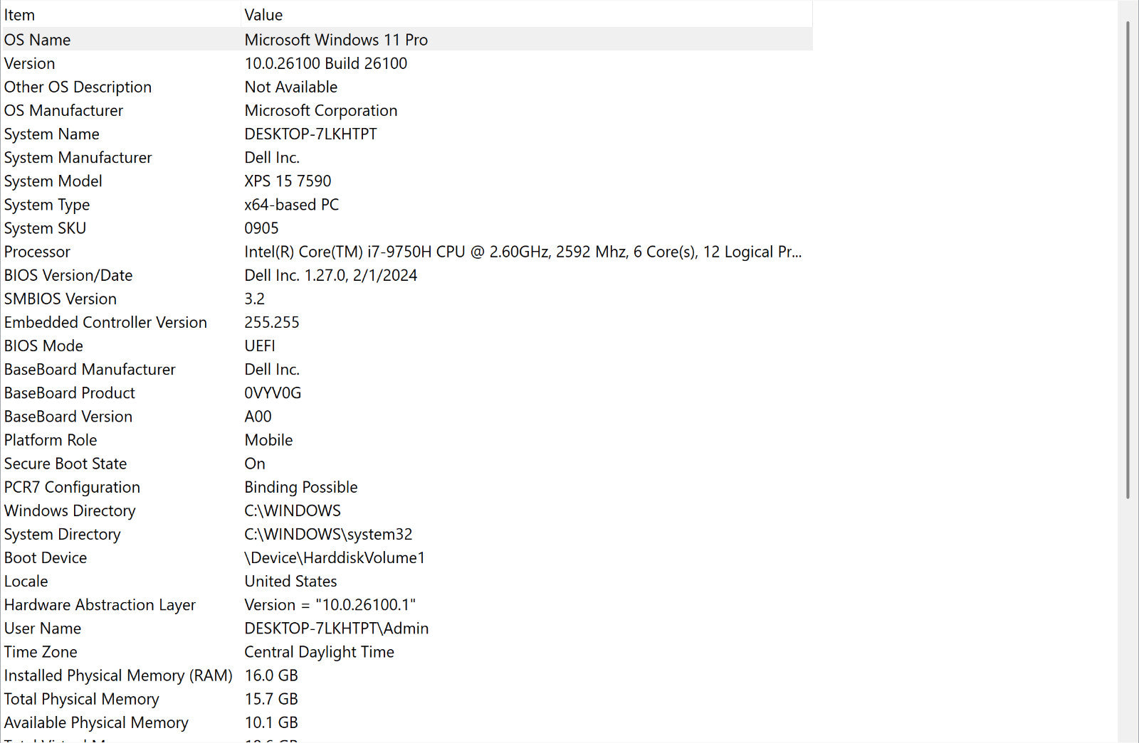 - Processor: Intel Core i7-9750H @ 2.60 GHz