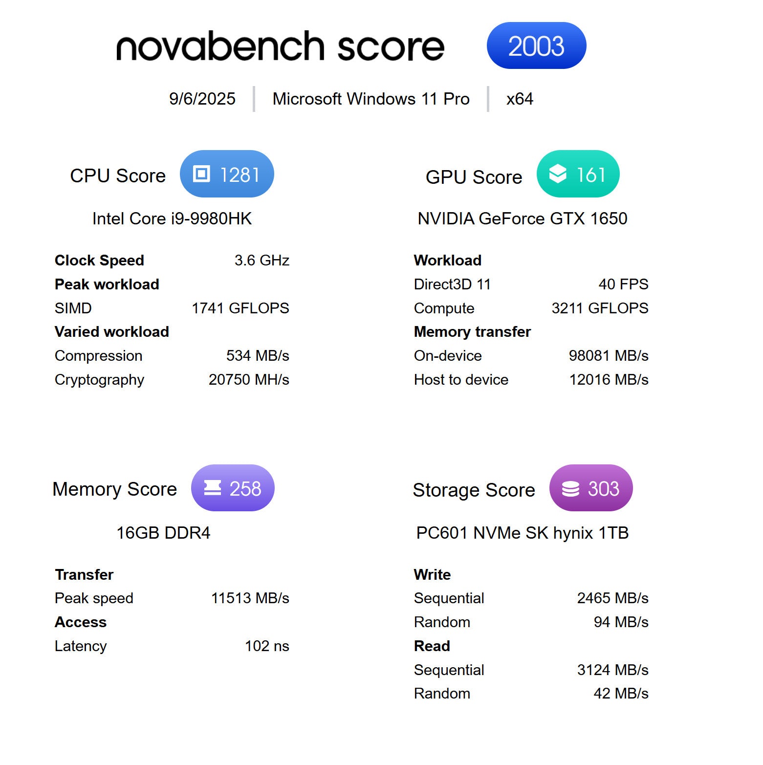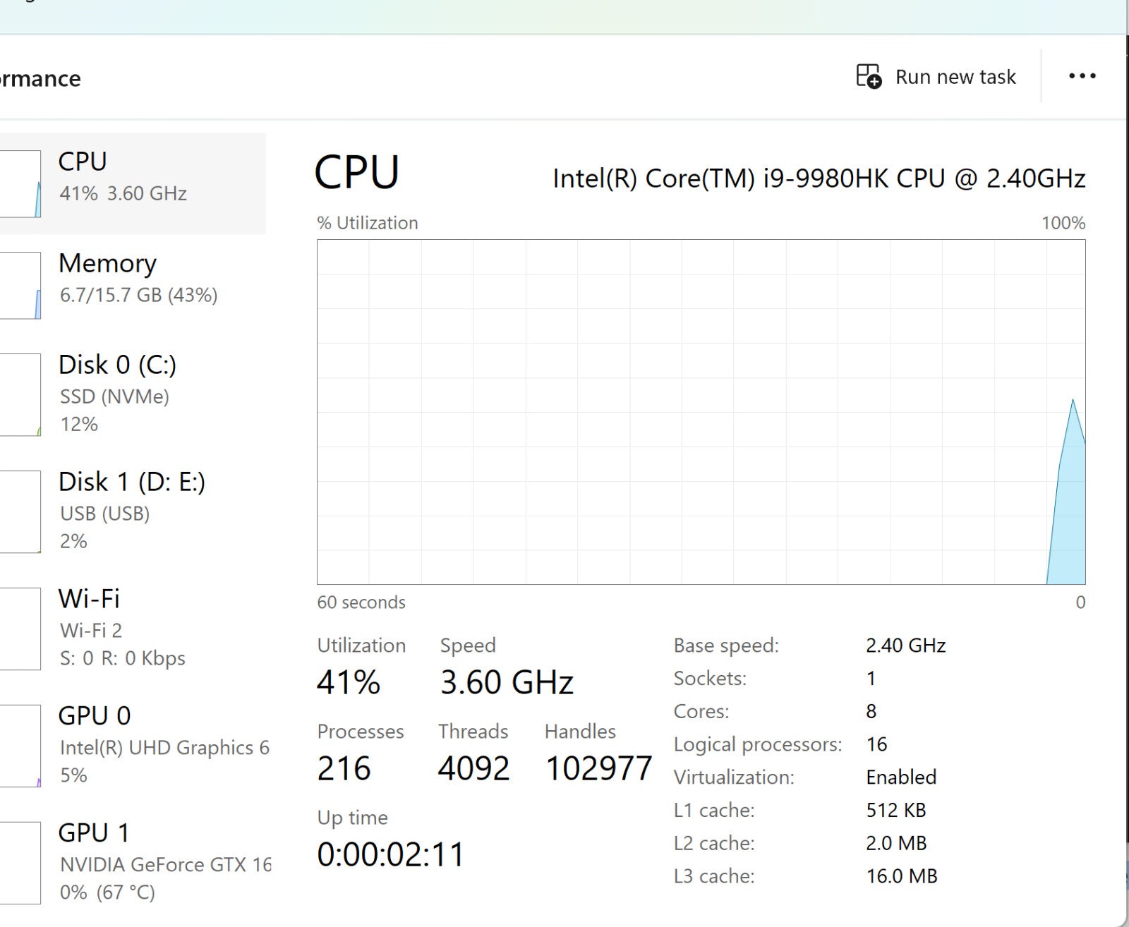- Processor: Intel Core i9-9980HK @ 2.40 GHz