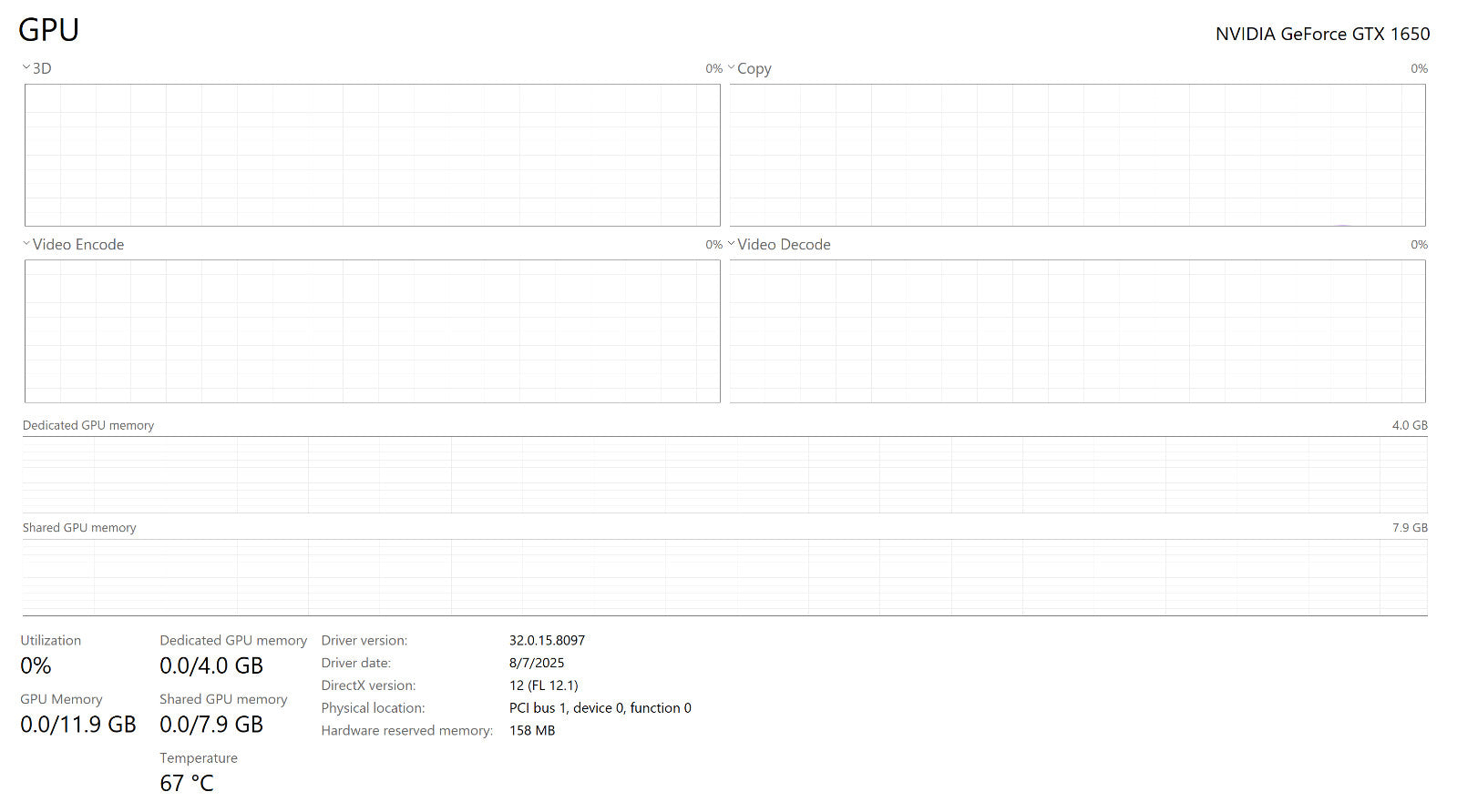 - Dedicated GPU: NVIDIA GeForce GTX 1650