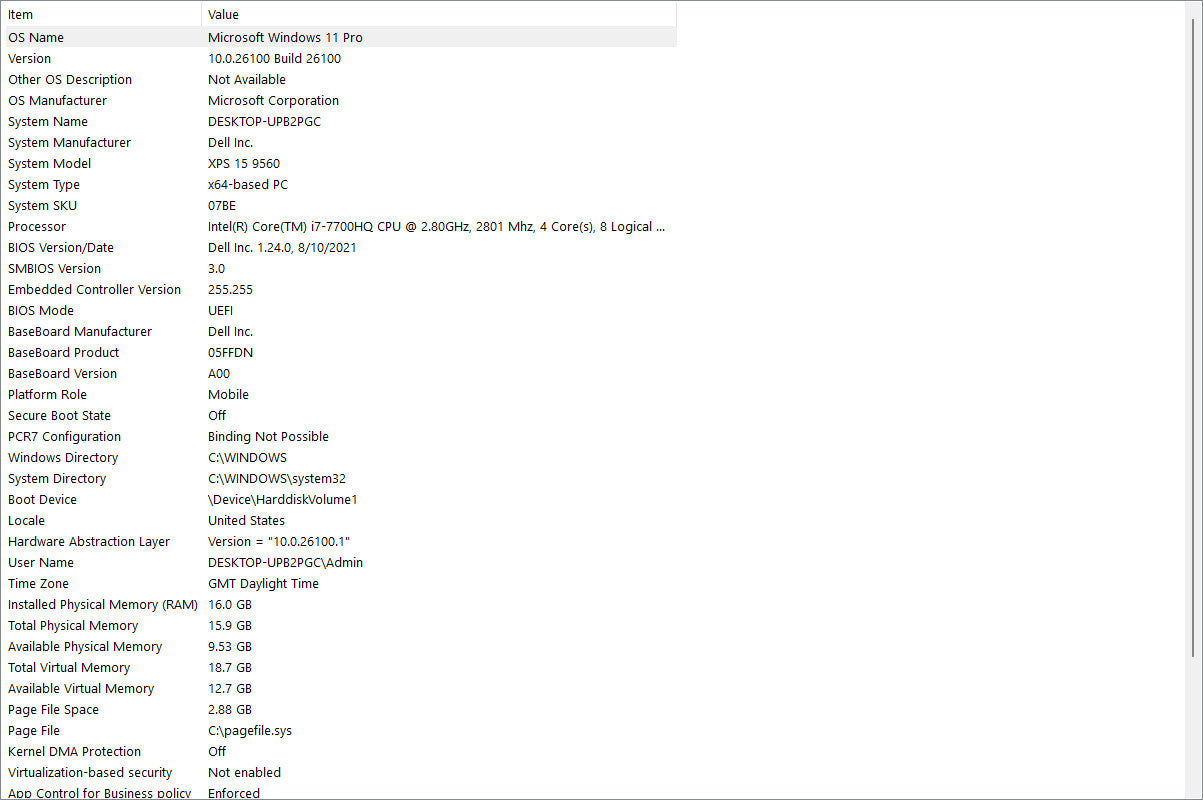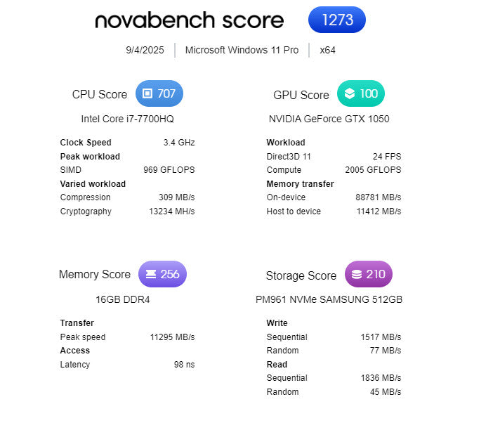 - Processor: Intel Core i7-7700HQ @ 2.80 GHz