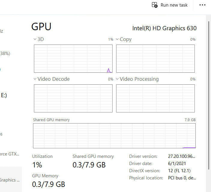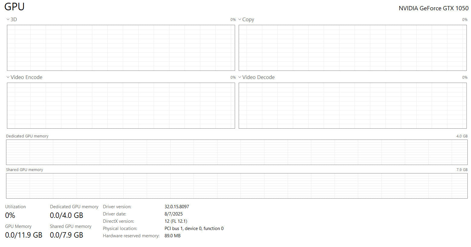 - Dedicated GPU: NVIDIA GeForce GTX 1050