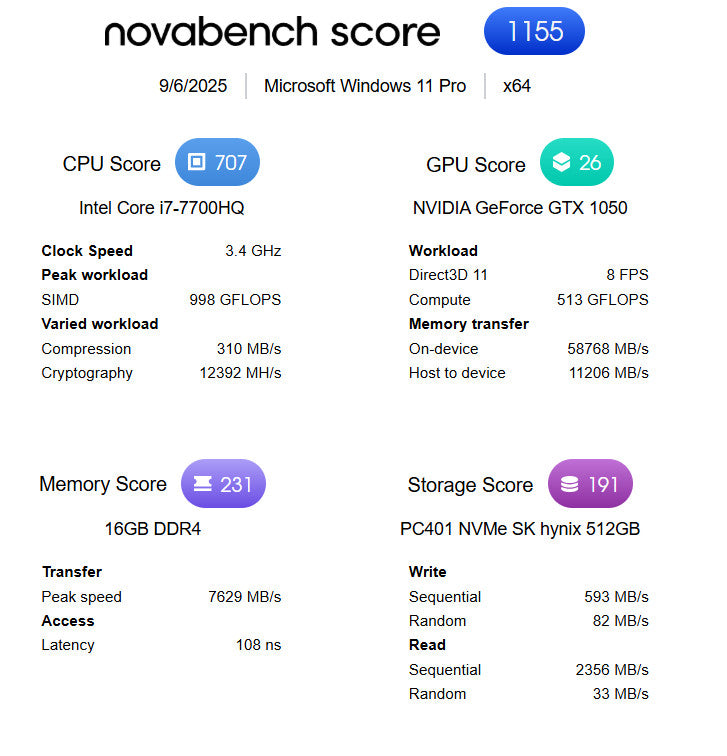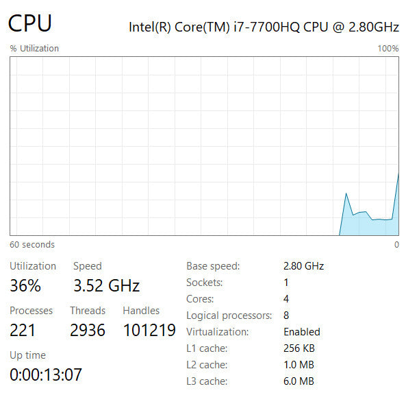 - Processor: Intel Core i7-7700HQ @ 2.80 GHz