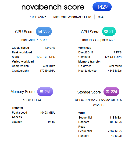 - Processor: Intel Core i7-7700 @ 3.60GHz