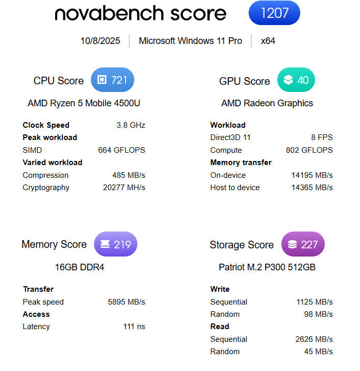 - Processor: AMD Ryzen 5 4500U with Radeon Graphics