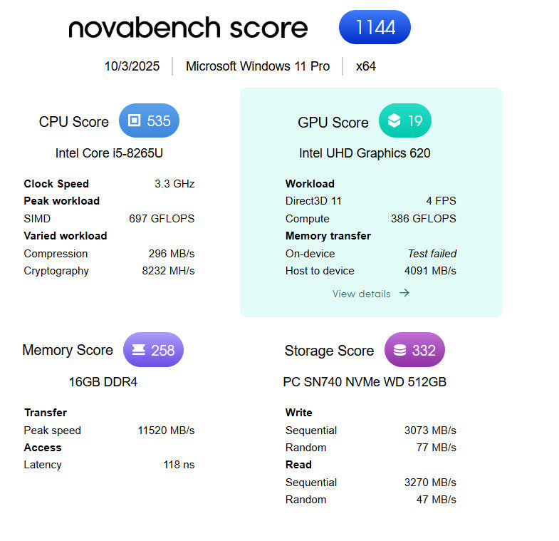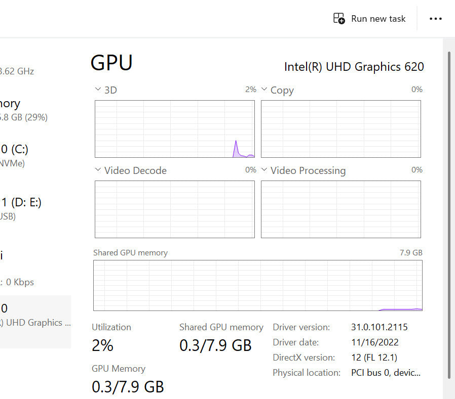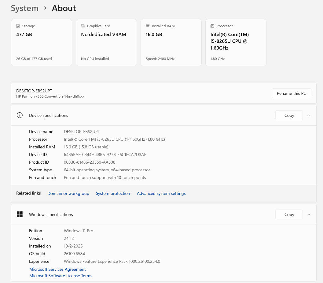 - Processor: Intel Core i5-8265U @ 1.60 GHz