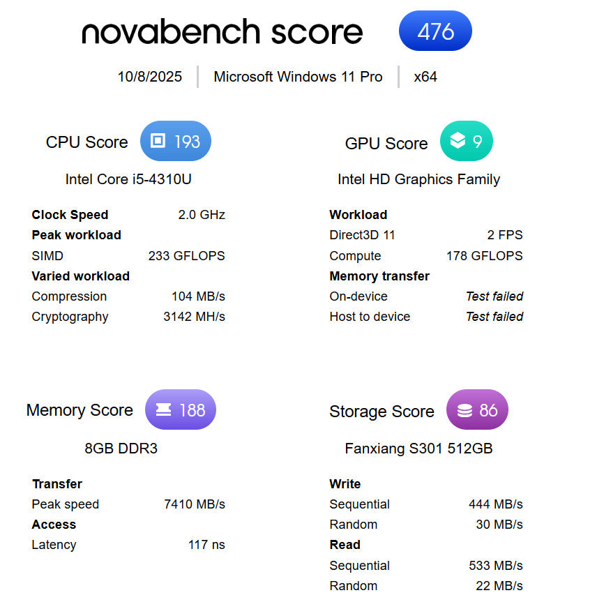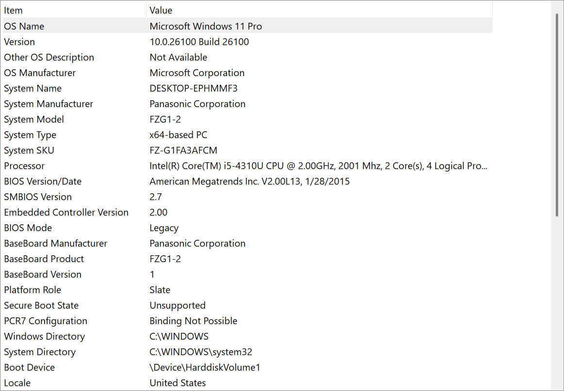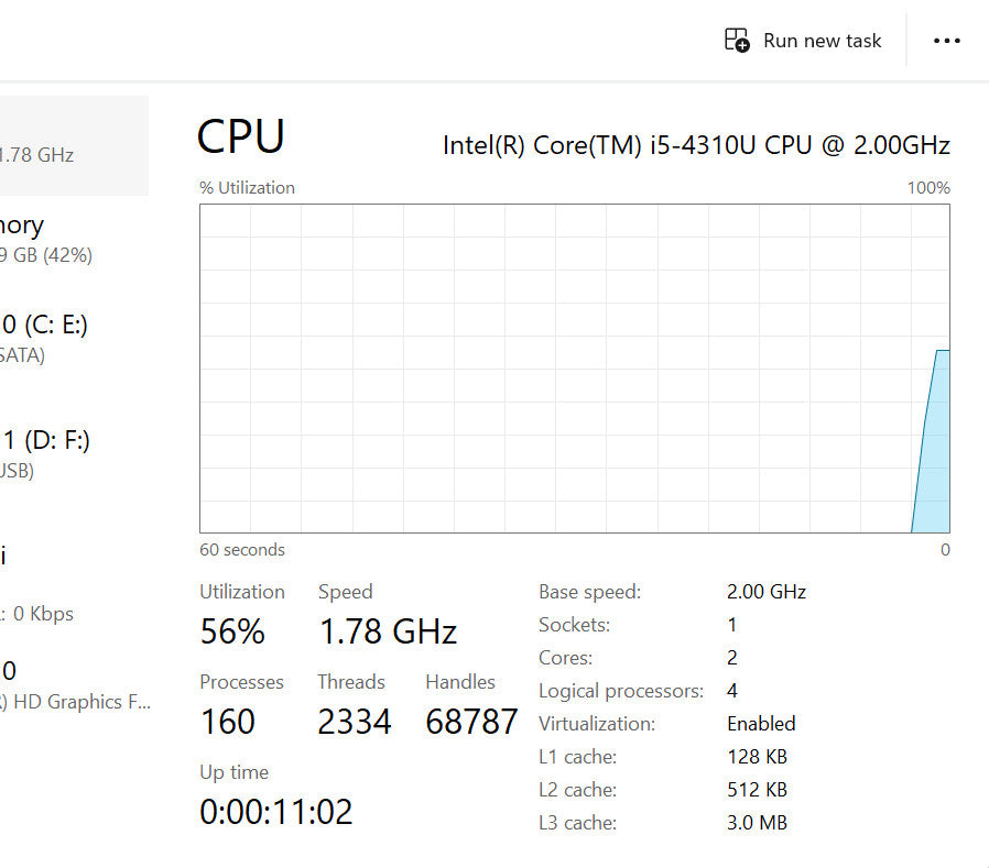 - Processor: Intel Core i5-4310U @ 2.00 GHz